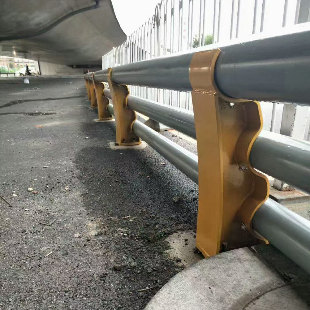 燈光護欄后經(jīng)計算和綜合分析效果良好,其成果可為非通航孔防撞設(shè)計借鑒參考.本實用新型公開了一種新型公路橋梁防撞裝置,包括底座和第三豎板,前后所述底板的上方均固接有第三豎板,所述弧形板的內(nèi)側(cè)均通過墊塊與第一減震組件固定相連,所述第一減震組件的內(nèi)側(cè)和左側(cè)下方分別安裝有第二減震組件和支撐組件.該新型公路橋梁防撞裝置,通過輥筒,橫桿,第一彈簧,框架,斜桿,銷軸,套塊,第二彈簧和套筒之間的配合,使輥筒,第一彈簧和第二彈簧可將不銹鋼復合管護欄沖擊的力量進行多次分解減震,解決了現(xiàn)有技術(shù)的防撞裝置無法進行減震分解的問題,通過第二豎板,滑塊,第三彈簧,支桿,底板和針頭之間的配合,使第三彈簧的彈力可將針頭可插進地面預設(shè)的凹槽位置,解決了現(xiàn)有技術(shù)的防震裝置的支撐性能較差的問題.